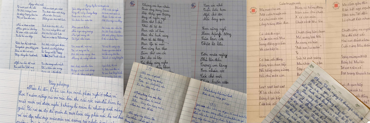 1. Một số bài viết của học sinh lớp 2, 3, 4 trong hoặc sau mỗi buổi học.